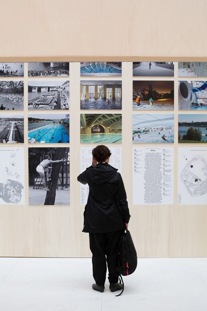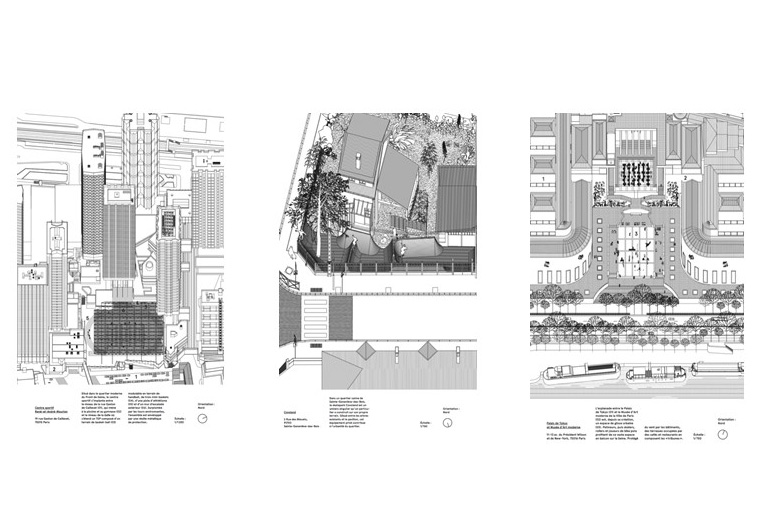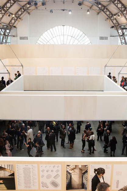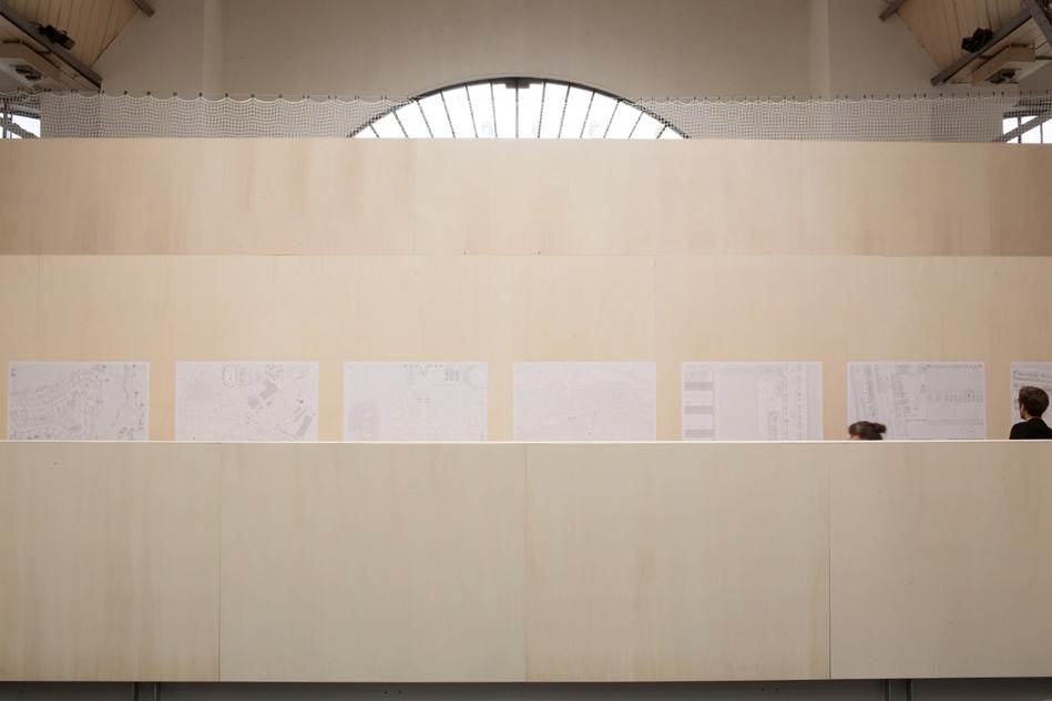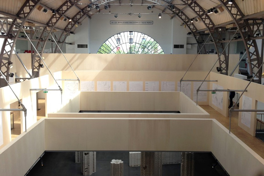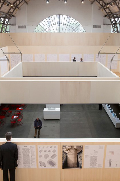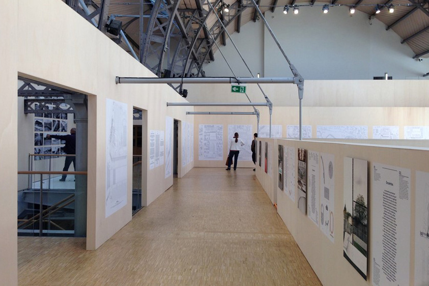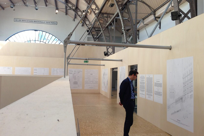 Les conditions locales – l’ancien entrepôt rénové en « pavillon » d’exposition pour la direction de l’Architecture de la Ville de Paris – furent ici aussi déterminantes dans la constitution du dispositif visuel, issu d’une recherche d’une interaction fertile entre la structure de l’espace d’exposition et son contenu.