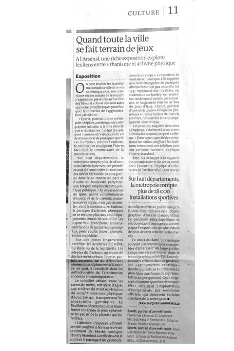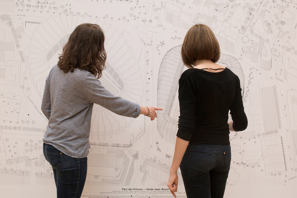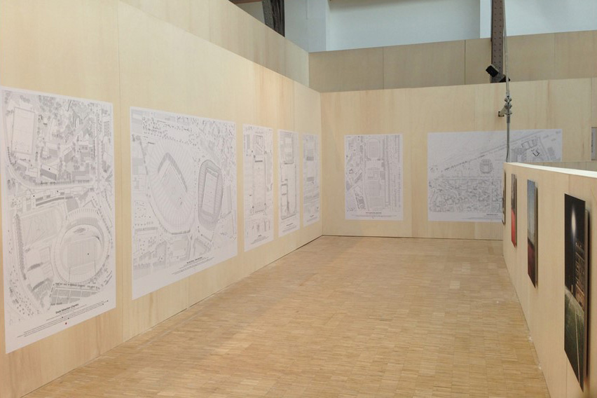 L’exposition « Sports, portrait d’une métropole », présentée au Pavillon de l’Arsenal en 2014, a été l’occasion d’élaborer une réflexion sur une autre scénographie conçue ici pour donner à voir et à comprendre comment le sport contemporain et ses espaces contribuent à construire le territoire du Grand Paris.