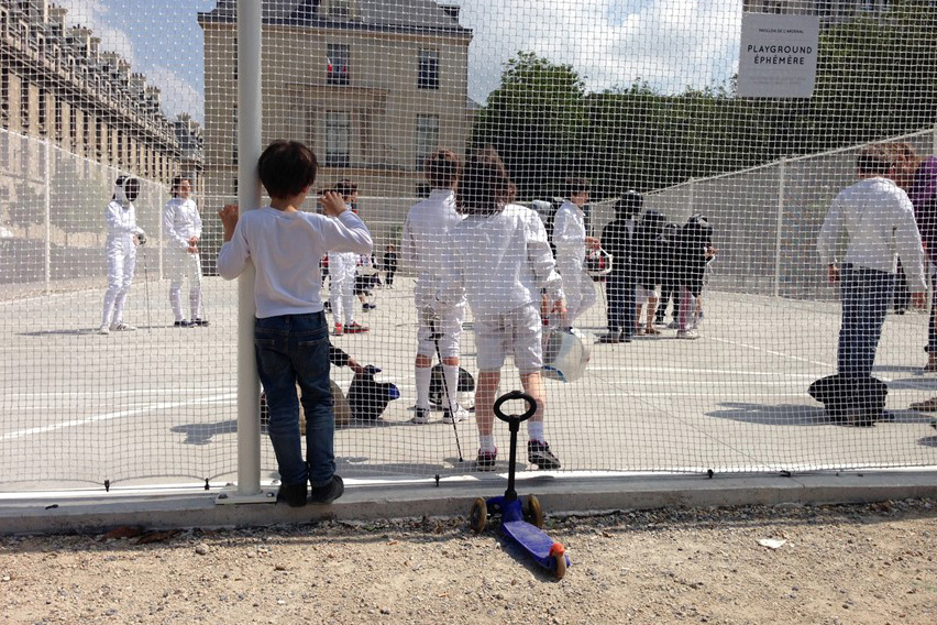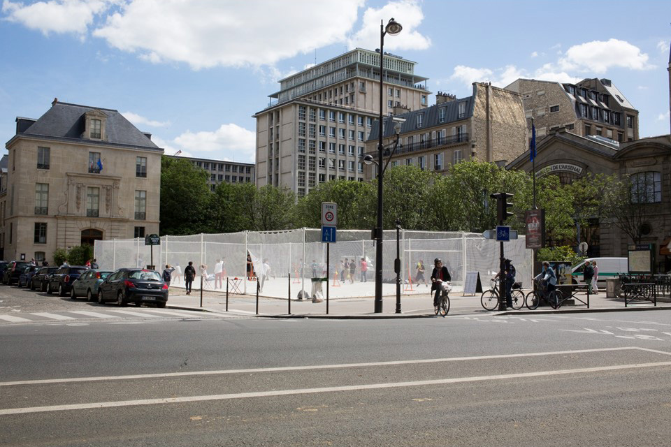 Comment faire alors? Dans son texte Paris, ville invisible, Bruno Latour propose, « pour rendre l’espace un peu plus réaliste », de se tourner non pas « vers une carte [ou une photographie], quel que soit le nombre de ses pixels, mais vers les oligoptiques ». Par ce néologisme Bruno Latour « désigne les étroites fenêtres qui permettent de se relier, par un certain nombre de conduits étroits, à quelques aspects seulement des êtres (humains et non humains) dont l’ensemble compose la ville »… Il s’agit alors de « basculer de l’illusion des panoptiques au parcours des oligoptiques ». Parce qu’il est essentiel de « localiser » les visions totalisantes sur Paris[3]. C’est ce que nous avons partiellement essayé de faire avec l’exposition « Sports, portrait d’une métropole » : appréhender la métropole parisienne à travers la pratique du sport et l’espace qui lui est associé.