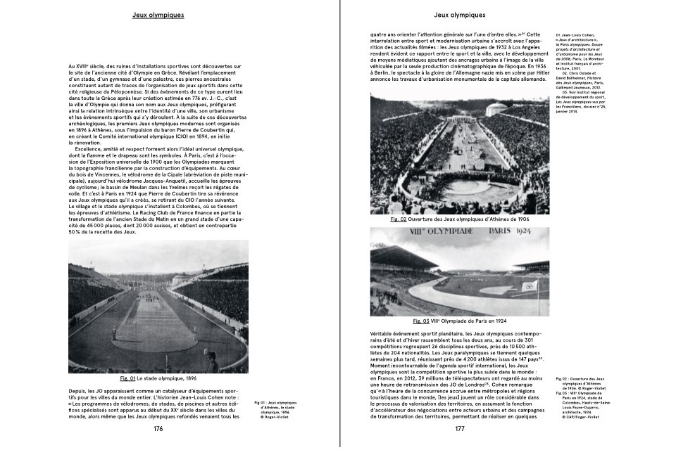 Les tracés au trait se focalisent, par leur simplification et leur manque assumé de nuance, sur le rapport physique entretenu avec l’environnement urbain. Il en est de même pour l’orientation et le cadrage, choisis spécifiquement pour chaque situation afin de rendre le message spatial plus clair. Ces dessins se veulent un moyen pour décrypter en profondeur l’espace du sport. Ils tentent de démontrer les relations entre le sport et la ville et la façon dont ces lieux et ces pratiques fabriquent celle-ci. Ils peuvent se lire à des échelles disparates, du plus grand au plus petit. La totalité de ces planches forme virtuellement un atlas de situations sportives remarquables.